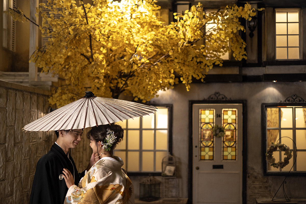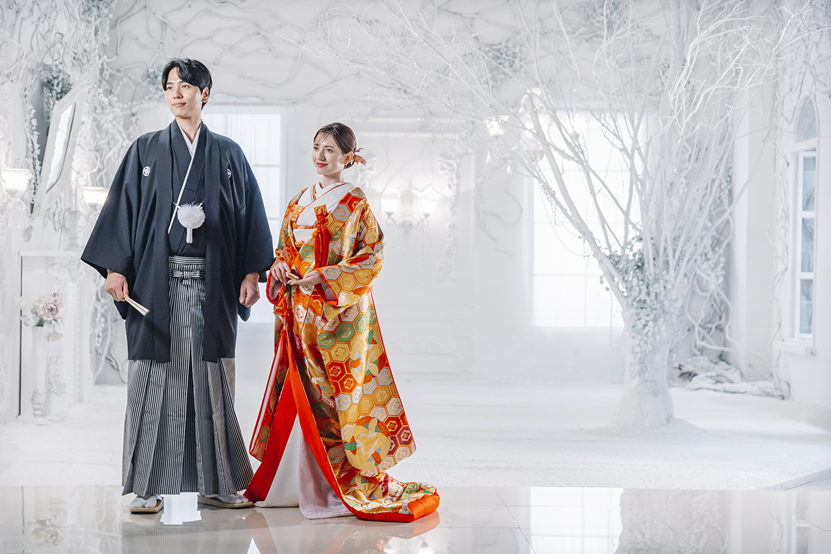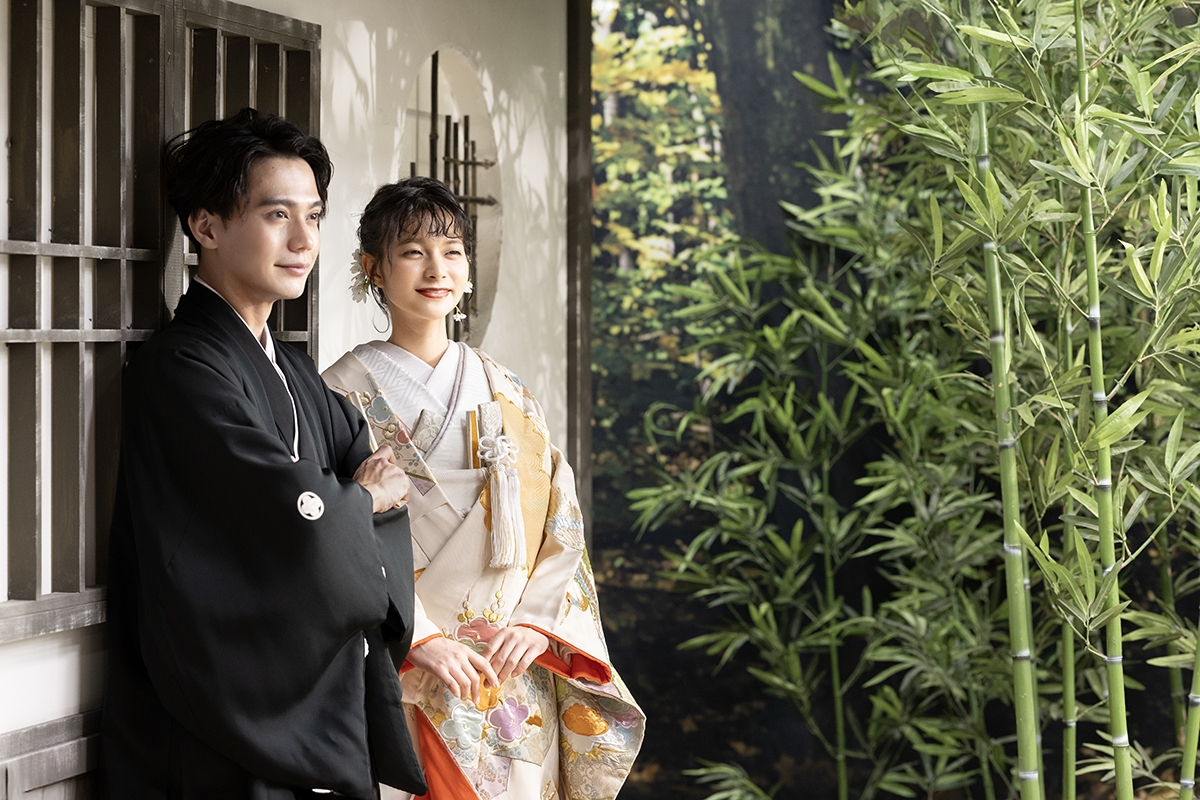 名古屋の和装前撮りはオレンジスタジオ名古屋にお任せください。白無垢や色打掛など和装1着のシンプルなブライダルフォトプラン。画像データはたっぷりの80カット。オレンジスタジオ名古屋なら和装に適したロケーションを見つけられます。